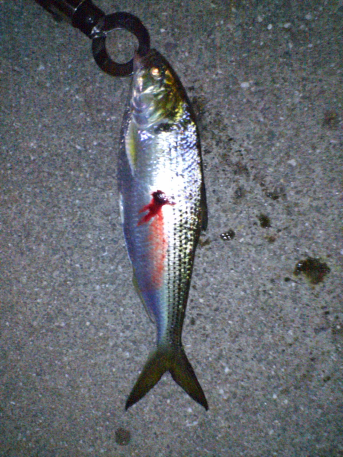 ルアーを必死でキャストしていると、ふらふら〜っと死にかけの魚がルアーの方へひっかっかってしまいました